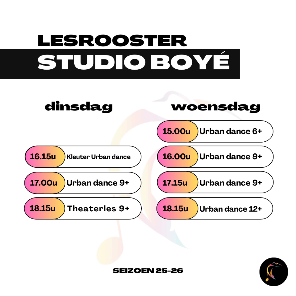 Bij Studio Boyé kun je kiezen uit Urban Dance en theaterles. De lessen worden gegeven